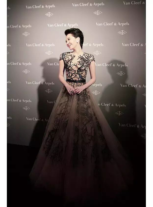 一袭温婉的透视长裙配上高挑的身姿和利落的短发,恰到好处的中和了柔美与英姿。