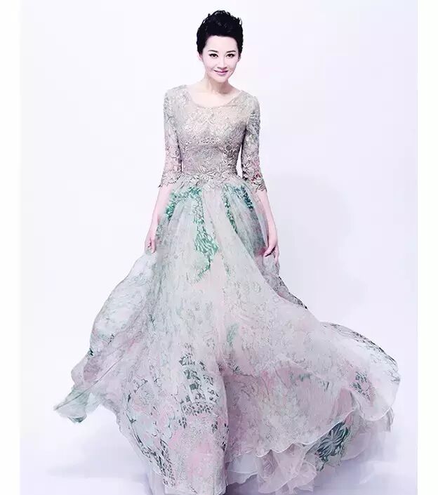 银白色提花镂空拖地礼服,印花裙摆透着中式的古典风情。如瀑布倾斜,又如挥洒的泼墨画。把御姐范儿活成一种态度,扬在脸上的自信,长在心底的善良,融进血液的骨气,刻进生命里的坚强。