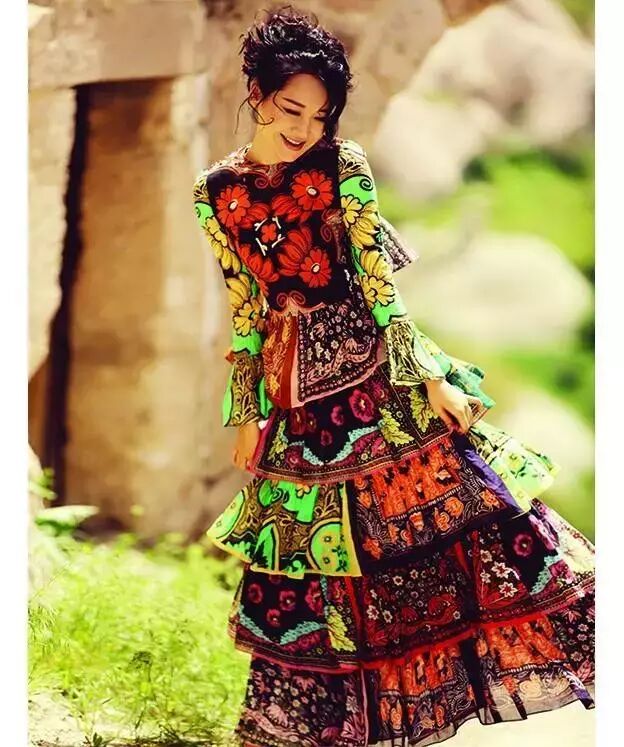 长裙,内搭,外套,融汇成一片花海,人间四月芳菲尽,山寺桃花始盛开。置身于其中,交相辉映。花仙子大抵如此。
