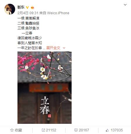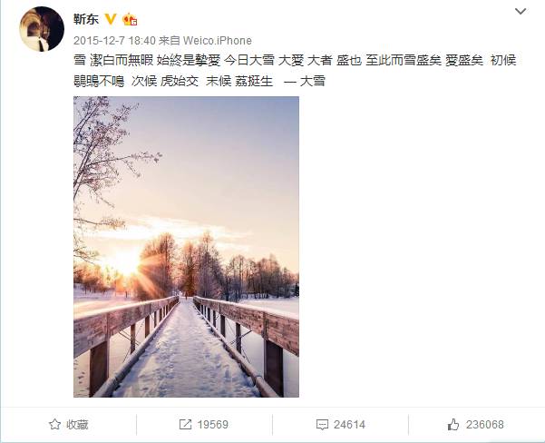 他的微博上发的文字图片,也有浓浓的文艺情怀~▼