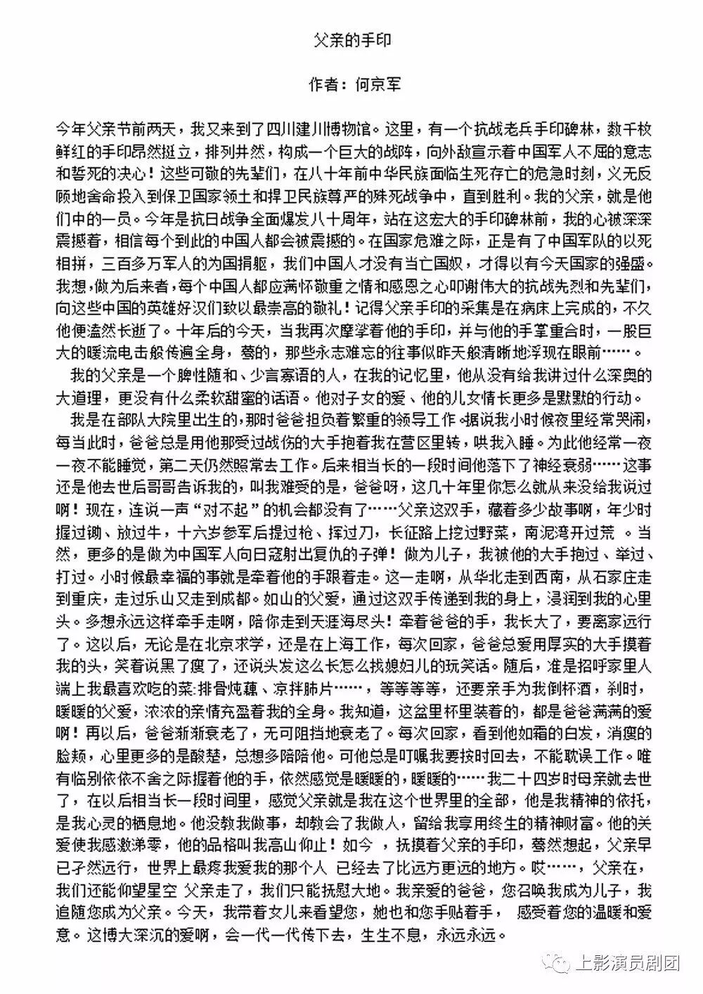 7月21日到22日,何政军老师在声影的舞台上与我们共同纪念中国人民解放军建军九十周年,向红色经典致敬。
