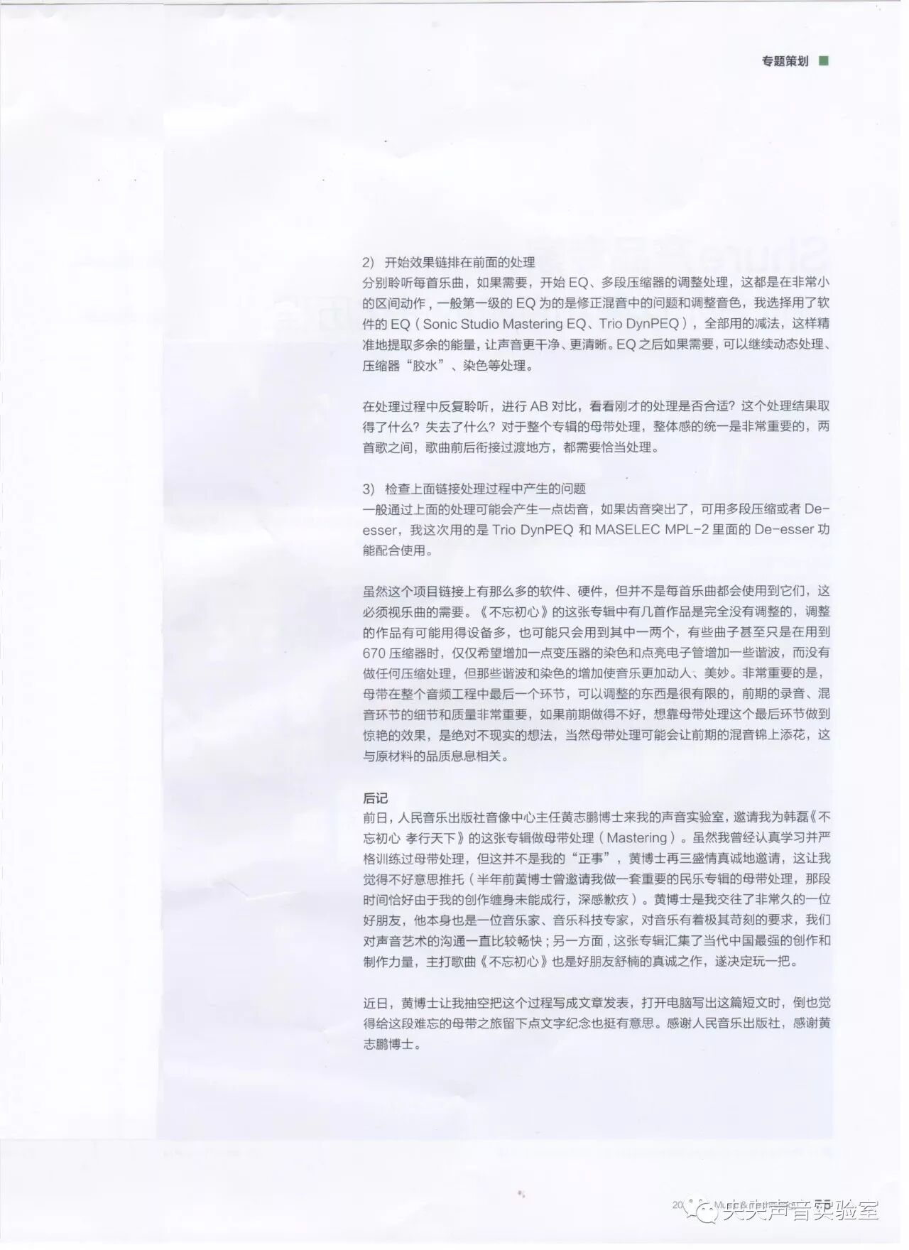 (注:原文刊登于《现代音响技术》2017年第一期)