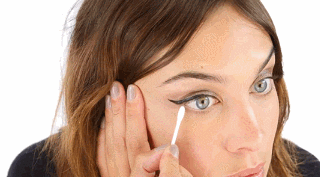 STEP 2.然后就是神器棉棒登场的时候了!用棉棒来拉长眼线,最好是用尖头的棉棒,这样能更好的控制眼线的形状。