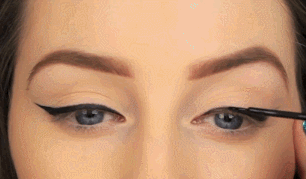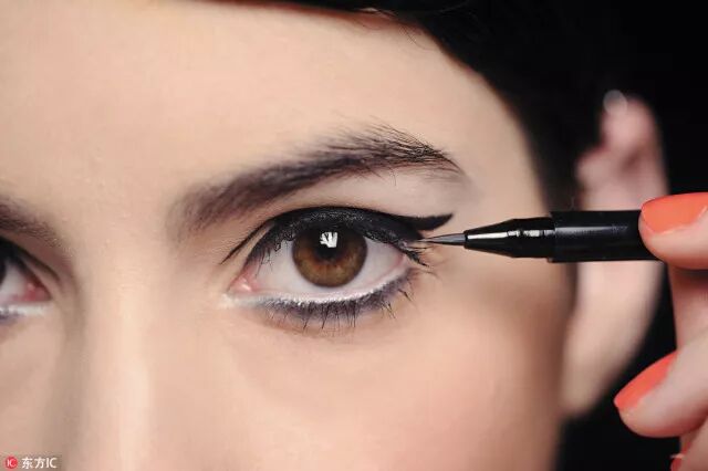STEP 3.最后换成液体眼线笔,将眼线从眼头至眼尾再描绘一遍,这样眼线的线条看起来是不是就流畅多了?