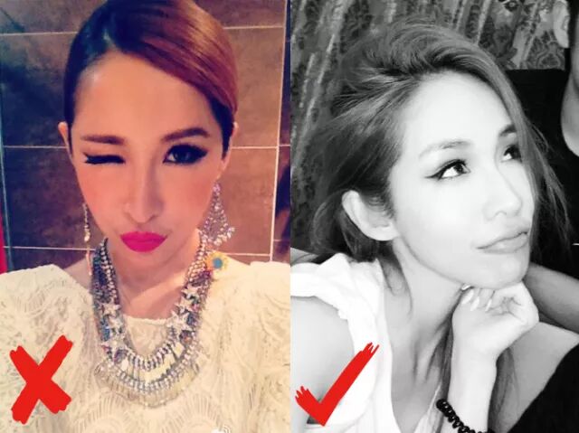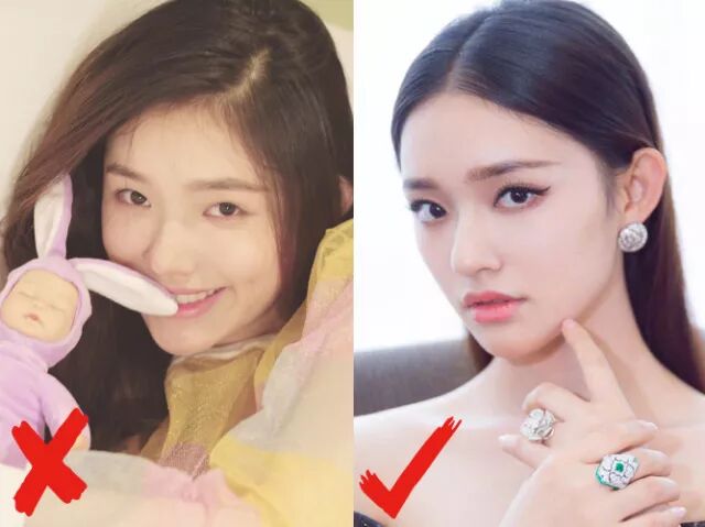 不管是眉毛上扬还是眼睛上扬,都会给人一种“凶巴巴”的感觉,虽然秀晶的眼型是漂亮的桃花眼,但是眼线如果没选对,除了显凶还会给人五官“紧绷绷”和“没长开”的错觉。
