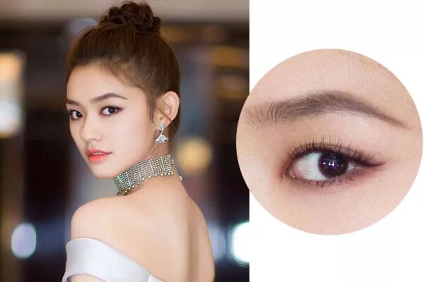 林允的眼睛就属于细长型,不画眼线的时候眼睛轮廓不太明显,她也是但凡出席活动一定会画“往上走”的眼线,眼型变得更加鲜明,双眼皮也更加明显。