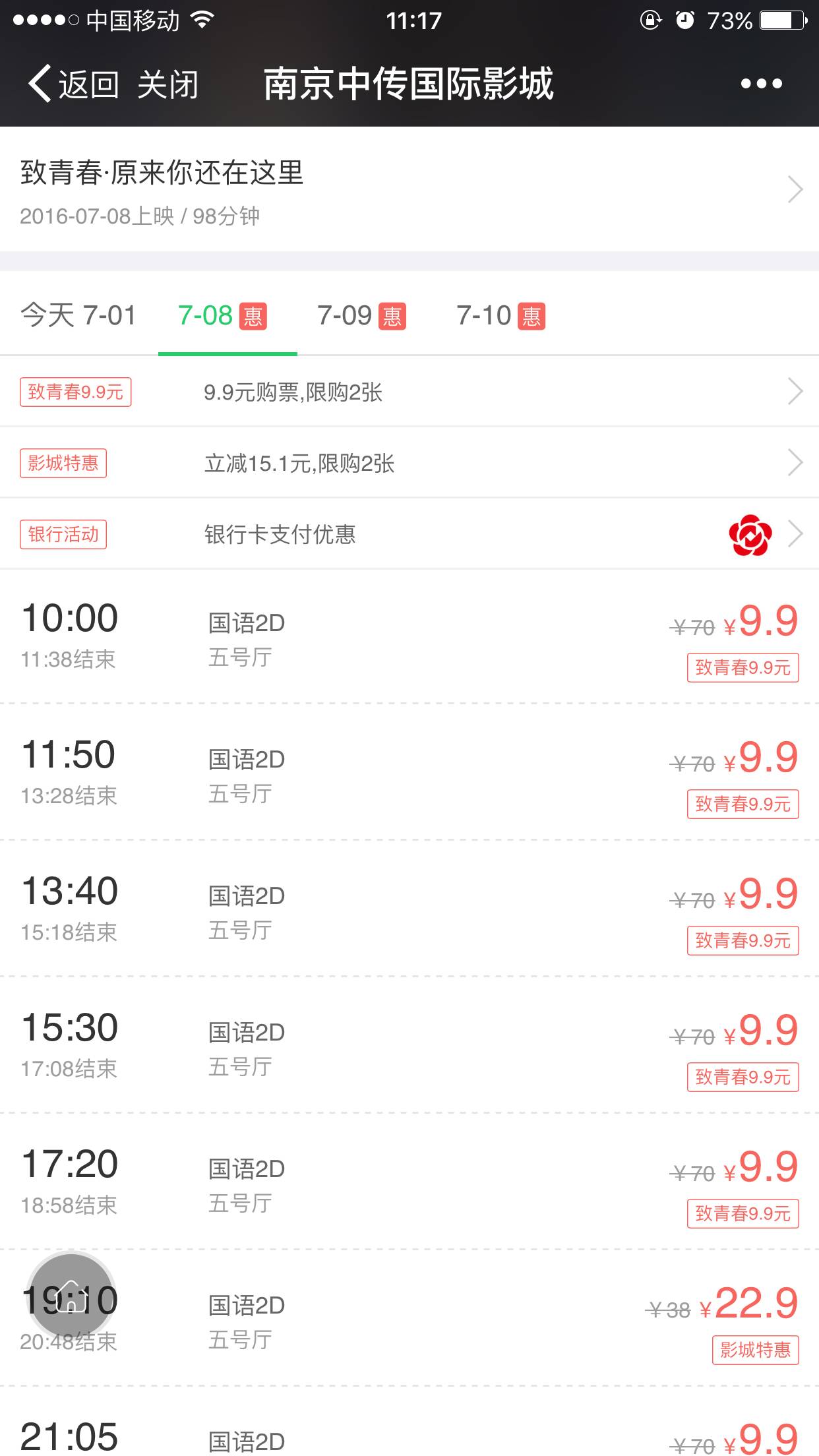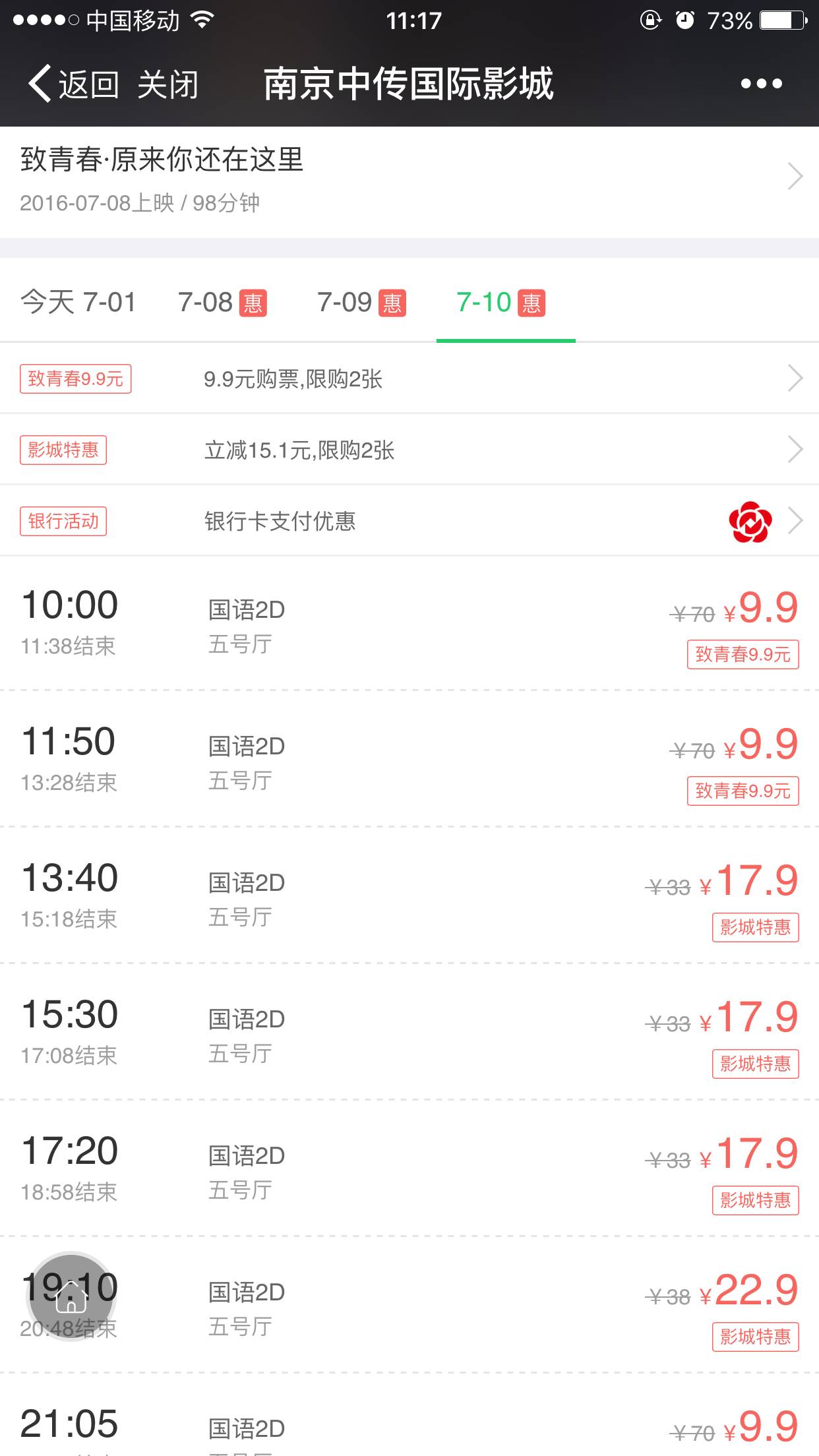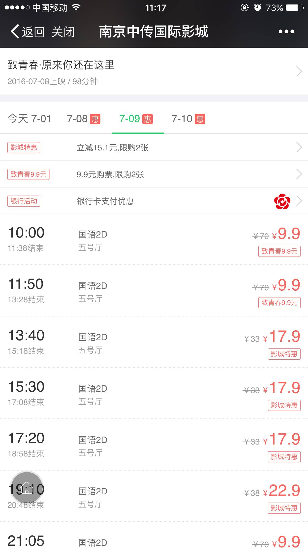 就可看到9.9元优惠观影