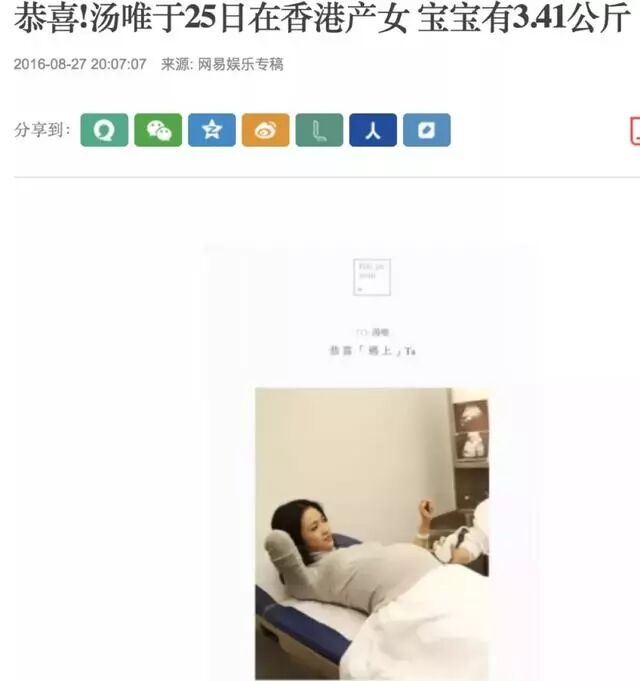 2016年8月25日,汤唯在香港顺产一女,宝宝约7斤重。