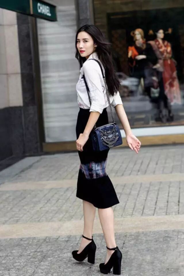 白衬衫搭配铅笔裙,知性而优雅的装扮,尽显利落职业范儿。