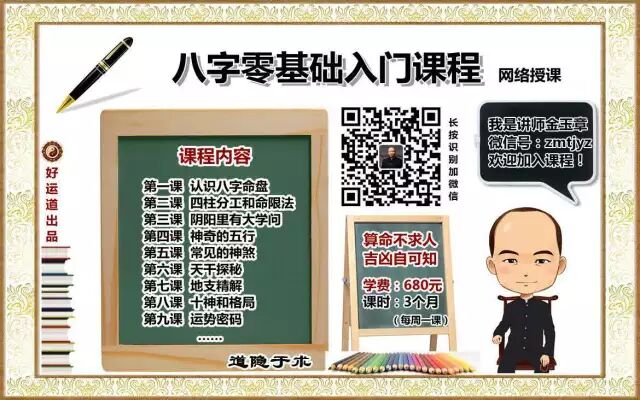 金玉章老师将于2016年4月份开设“八字零基础入门”课程,现在开始接受报名!任何有兴趣探索命运奥秘的朋友都可以参加,学费是历史以来最低的亲民价格680元。