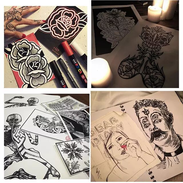 Hannah经常在个人IG帐号中分享她的手稿和草图,文身爱好者们可以来交流一下哦!
