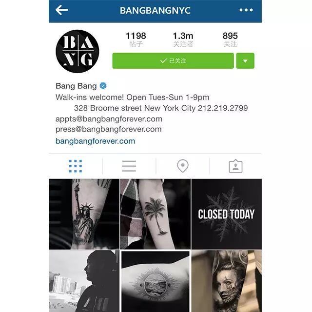 熟悉Rihanna的童鞋一定对这家Bang Bang纹身工作室毫不陌生,位于纽约的Bang Bang可是众明星光顾最多的纹身工作室了。