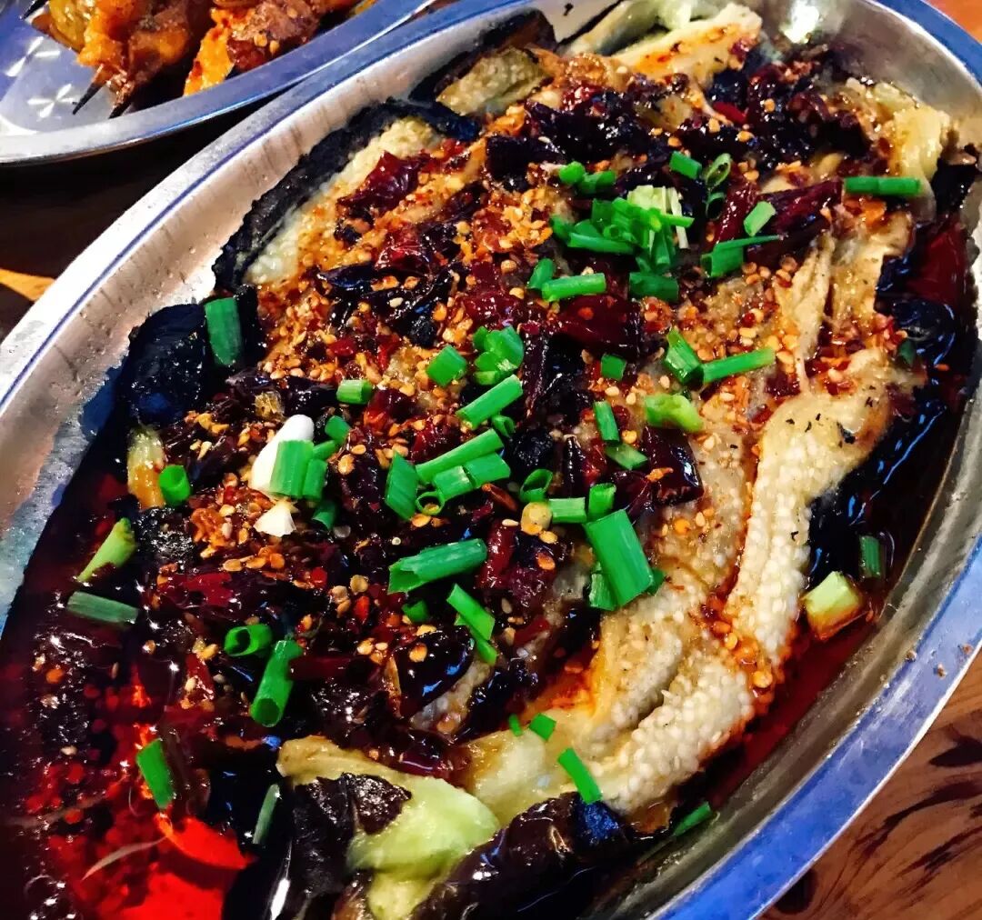 烤脑花滑嫩的就跟豆腐脑似的,细密绵软。鸭肠、鲫鱼、牛蛙,也很好吃,而且牛蛙和鲫鱼都是马上杀了烤的,特别新鲜,味道不重,但是却是黑好吃。老板黑能吹跨跨。