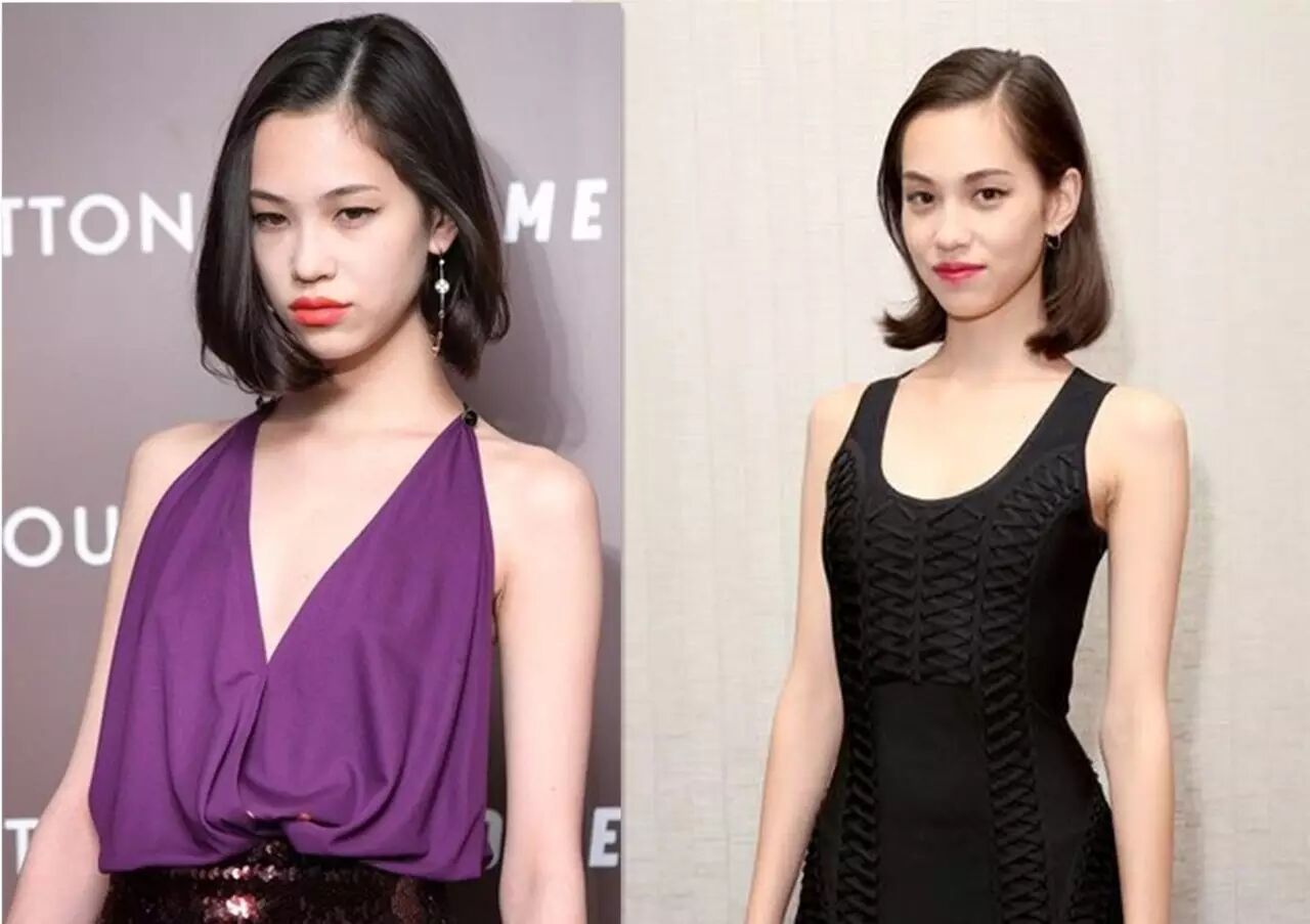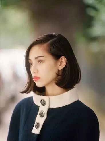 她的发型基本都是及肩的lob头,非常衬她瘦长的脸型!