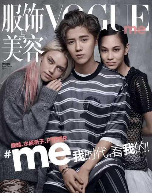 Vogue Me杂志终于发布了第一期封面照,鹿晗、水原希子、Pyper America Smith,三个来自不同国家代表不同文化的90后新生代偶像登上首刊封面。