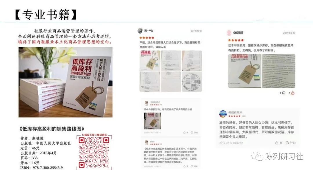 全套课程包含:《商品销售进度管理》、《商品采购计划制定》、《商品上市计划制定》三个课程,内容非常系统全面,能够让学员学会从更多维度进行商品销售规划,学会在商品的季度销售周期内尽可能提升销量、减少库存、提升毛利,加快资金回笼的速度。通过经营复盘与市场预测,制定符合市场经营要求,同时满足公司经营收益的采购预算、精准制定品类采购组合规划,实现高盈利、低库存!