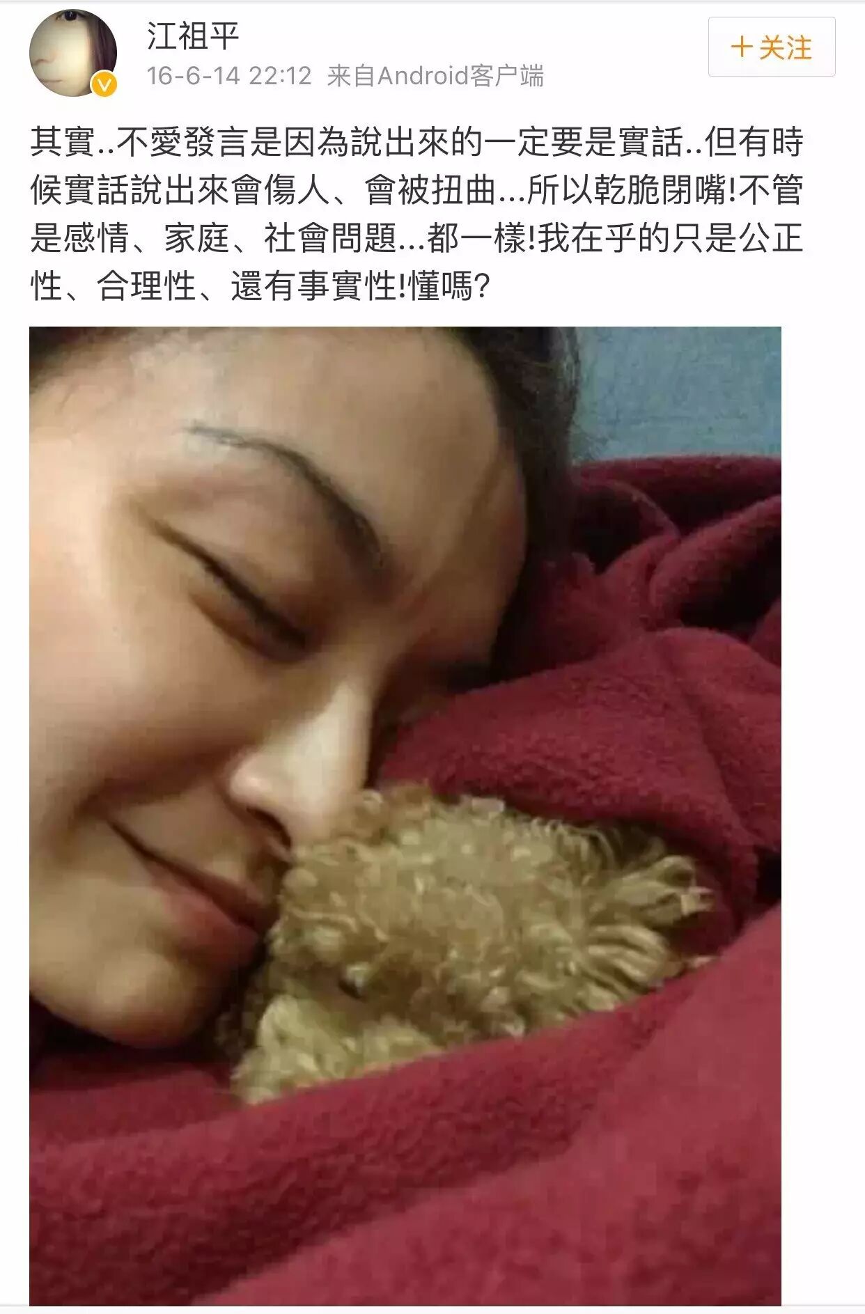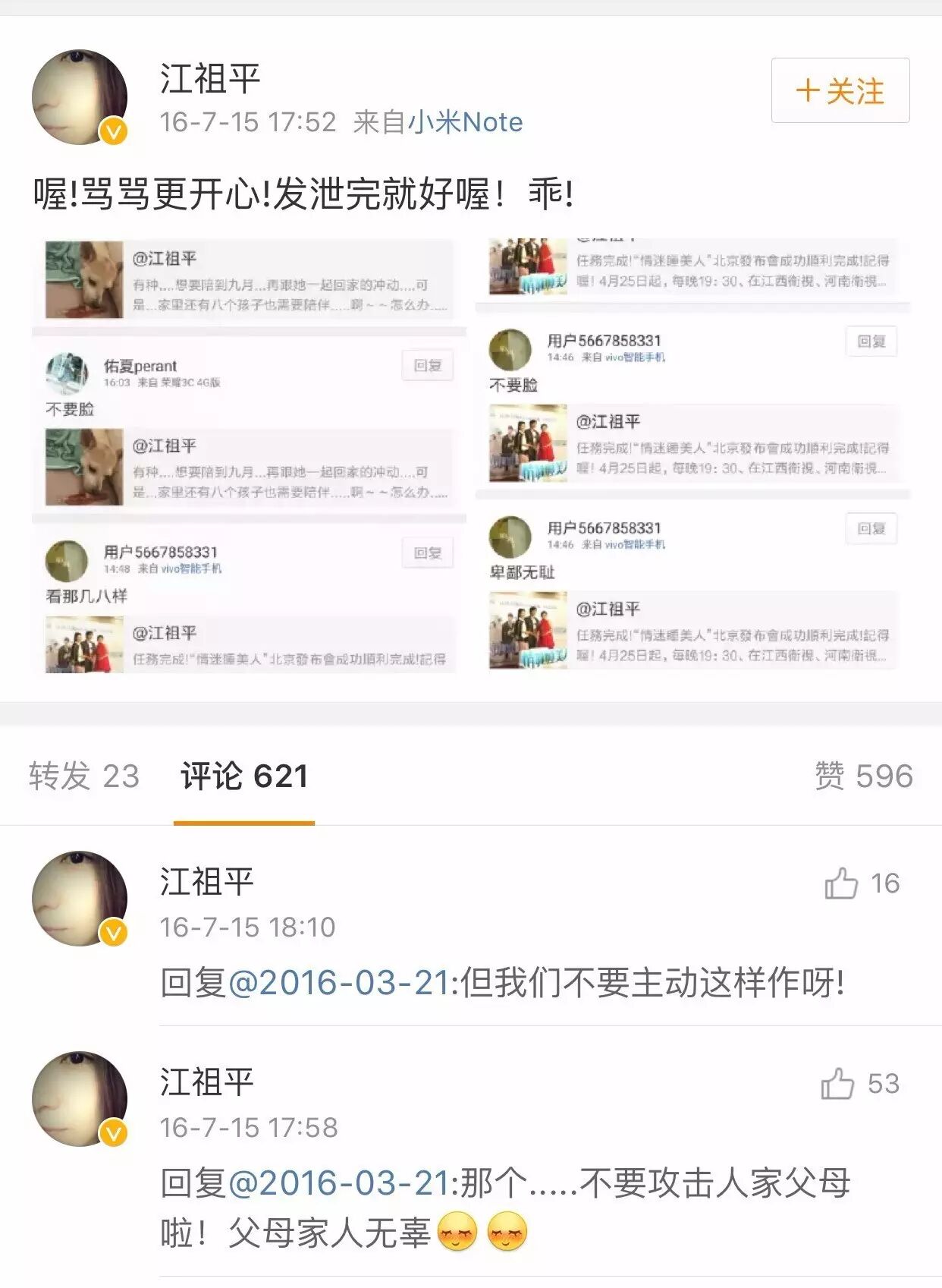 在微博上的江祖平也是简单低调,有时候遇到没素质谩骂的人也会温柔怼一下