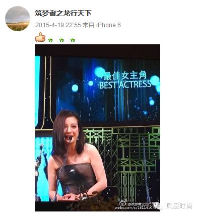 去年赵薇获得金马奖最佳女主角,老公还含蓄地给了赵薇一个赞呢~