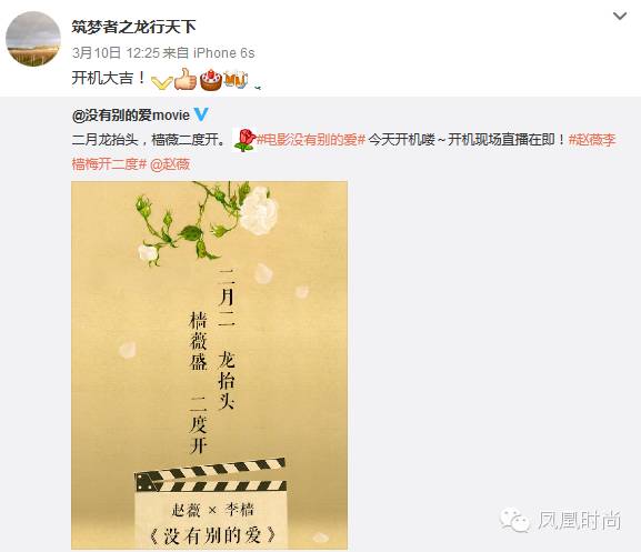 所以二次执导电影的赵薇,新戏刚开拍,就已经收到了好友们的祝贺和力挺。
