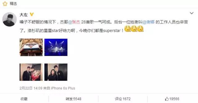 一手包办策划、选曲等等,也是蛮用心的。PS:小主发现从什么时候开始,张杰的微博变得生活化了虽然微博内容只有录歌、演唱会、谢娜,但是中二少年终于愿意打开心扉,拥抱世界了。啊哈哈哈哈