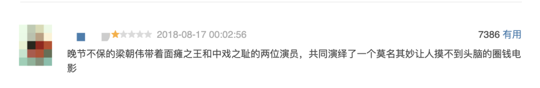 借用网友的话来说:人物立不住,剧情背景欲说还休,有梁朝伟也救不了。