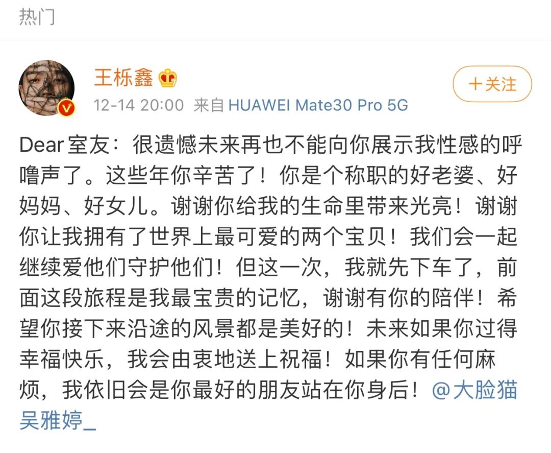 爆!王栎鑫突然宣布离婚! Buy遍全球1004 内地男星 2020-12-14 20:55:40 635 创作不易,用心坚持,欢迎请BaGua喝几杯爱心咖啡!打赏并支持本文 打赏并删除本文 爆!王栎鑫今晚8点宣布离婚!!!他的前妻回应我真的震惊了!明明在我记忆里还是他们结婚时甜甜蜜蜜是王栎鑫主动帮忙追星是他们一家四口和和美美怎么就突然宣布离婚了?你们是不是又不相信爱情了??不管怎样还是祝他们各自安好吧!❤️ 创作不易,用心坚持,欢迎请BaGua喝几杯爱心咖啡!打赏并支持本文 打赏并删除本文 感谢您的支持鼓励,我会继续努力的!文章地址:用户邮箱:打赏金额:USDT 请输入数字点击”去打赏“,即可进行打赏支持本文章哦 王栎鑫 About the Author Buy遍全球1004 功能介绍:公众号界的小怼怼,国际专业撕逼小能手~ Related Posts 王珞丹“退圈”是假,想红是真?她为何出道即巅峰? 2021-05-26 21:06:09 王菲谢霆锋,那些年的那些瓜...... 2021-04-09 20:58:40 爆!王栎鑫突然宣布离婚! 2020-12-14 20:55:40 看完这些鞋,突然想嫁人了~ 2018-05-03 23:03:06 发表评论