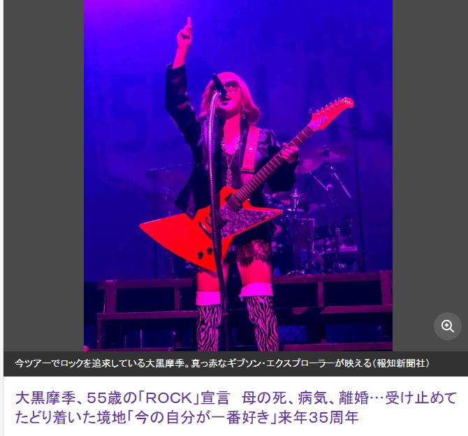 如今在巡演中追求摇滚风格的大黑摩季。鲜红的吉布森探险家吉他格外耀眼