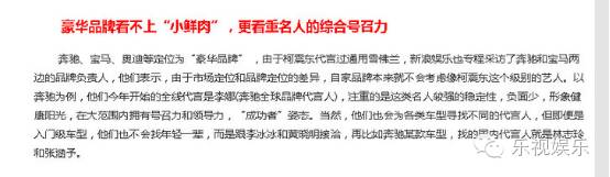 如果说明星通过影响力、口碑声誉、作品表现这几点来比较谁更红,效果不是很明显,那商业代言的质量就成了谁更红的度量衡。