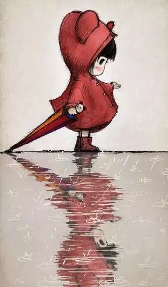 下雨,带她到外面踩水。