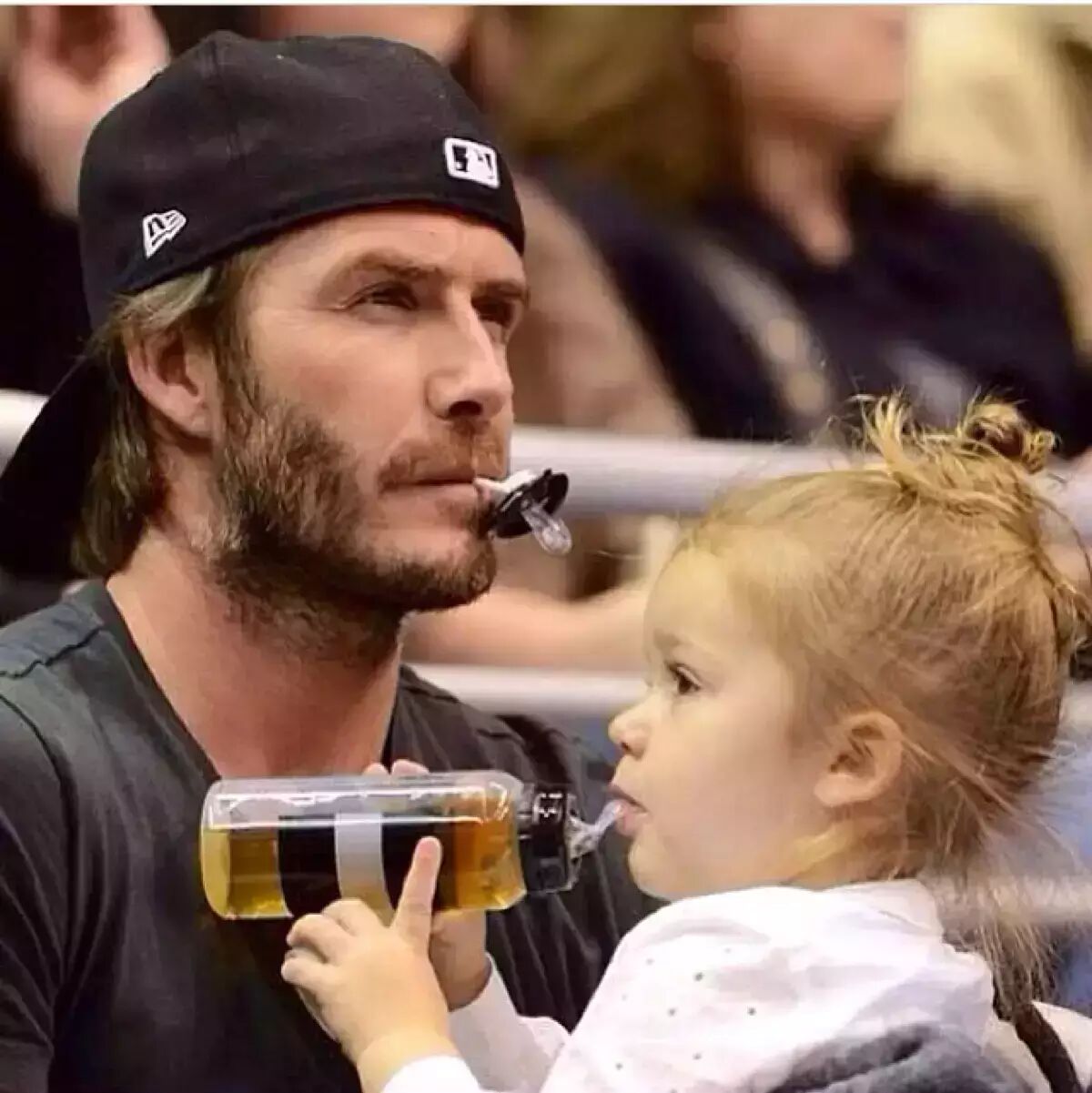 贝克汉姆应该算是体坛比较有名的“女儿控”了吧?父女俩被赞是全球最帅足球巨星和世上最萌小萝莉的完美组合。在儿子面前小贝应该算是威严的老爸,但只要一碰到小女儿就自动化身女儿奴,不仅帅脸任戳不生气,还整天拿着相机追在女儿背后各种狂拍,一有时间就各种抱抱亲亲,全然不在意旁人的眼光。