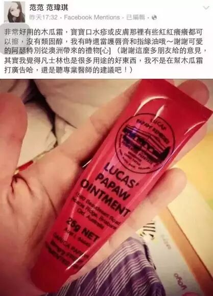 范范在推中也强力Zan赏这支万能膏:非常好用的木瓜霜,宝宝口水疹或皮肤那里有些红红痒痒都可以擦,没有类固醇,有时还当护唇膏和指缘油哦~