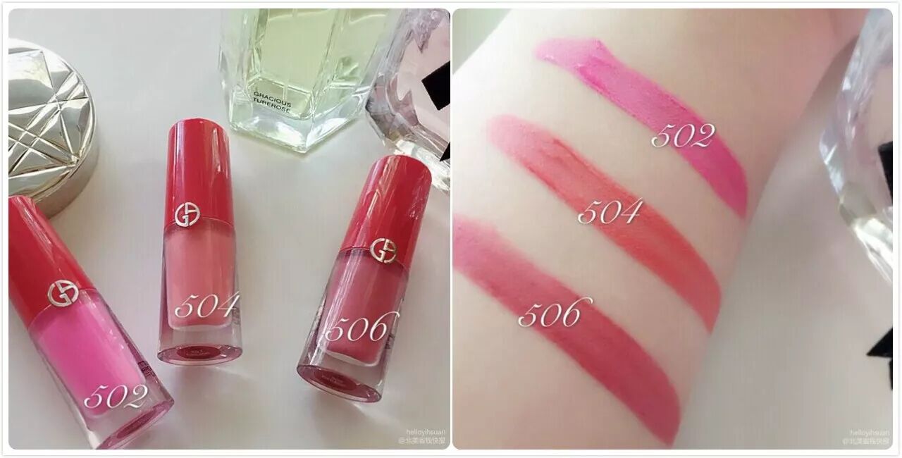 晒货粉丝@helloyihsuan:說到2017年搶手的霧面口紅,一定要提到Giorgio Armani出的小胖丁系列!質地輕薄、上嘴感受不到它的存在,但是非常持久又不太沾杯,最重要的是不乾!這一系列有好多顏色選擇,我手邊的504、506都是熱賣色,504偏珊瑚紅、506偏豆沙色,很適合日常使用,502顏色看起來不太日常 但是上嘴是挺青春的淡粉紅色,也是很好看的呀!
