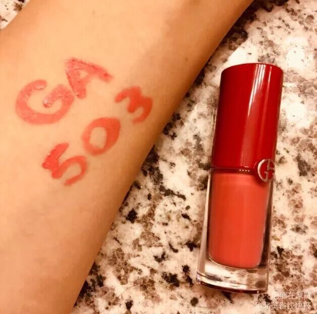 晒货粉丝@Schizophrenic_wawa:阿玛尼红管手臂试色,406 414 509 508四个色是圣诞限量,其余的都是常规色,508 509带微闪,简直对GA红管没有抵抗力,不拔干,显色度持久度也好,算是最爱的唇釉系列