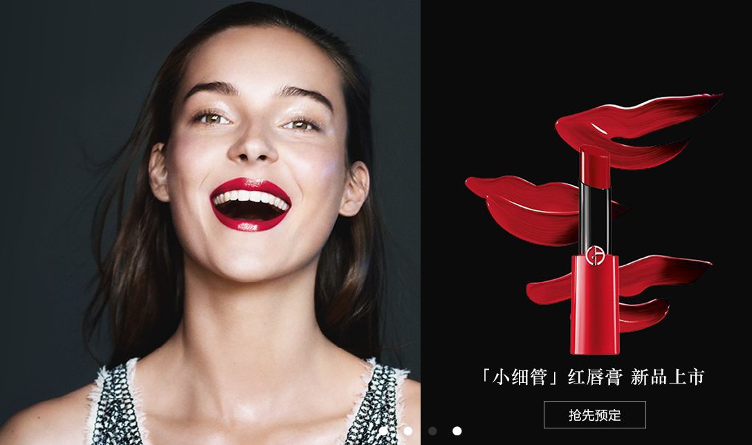 除了品牌经典的红管唇釉、小胖丁染唇液外,阿玛尼在开业预售中更是提供包括小细管红唇膏和天猫独家首发限量版红气垫等新品作为开业权益提供给线上消费者。