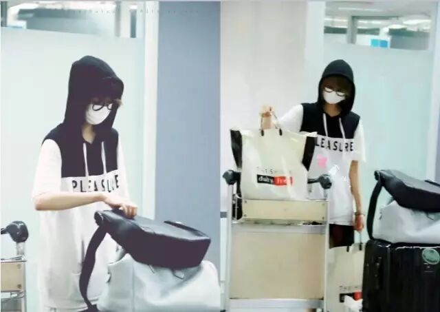 这样满身大logo的衬衫还真是不好驾驭,也只有搭配这款青春无害的五官才能减少自带的俗气吧。