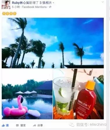 ▲ 在巴厘岛拍摄婚纱照之后,心如便安心地做起了“待嫁新娘”。在大婚前,她在Facebook上晒出了巴厘岛的蓝天白云配无敌美景照,隔着屏幕都能感受到心如的幸福与喜悦。