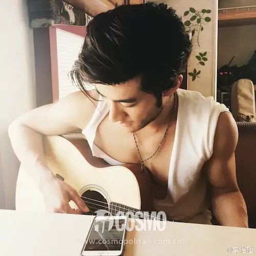 这张照片更是戳中少女心,一个肌肉发达的深情男生对着你弹吉他唱情歌这是一件多么浪漫的事情。李治廷除了会弹会唱之外,更是创作的一把好手,不仅自己的首张粤语专辑《今天开始》大部分歌曲亲自作曲填词,之后更是为卫兰的英文专辑《morning》包办全部歌词,《武媚娘传奇》片尾曲《无字碑》也是由他作曲。