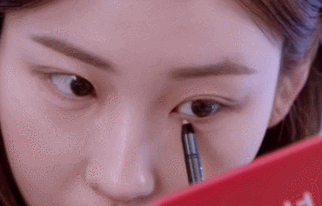 步骤十八:使用香槟色的防晕妆珠光眼线笔,自然地填充卧蚕部位。