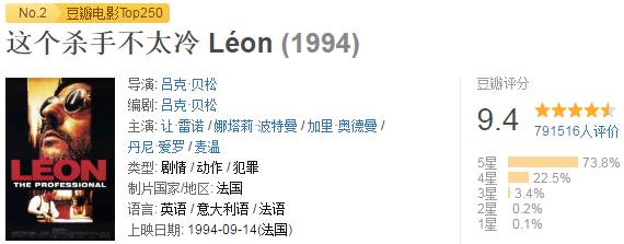 别说你没看过他的《这个杀手不太冷》啊,这可是被中国影迷推到豆瓣No.2的经典中的经典。