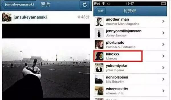 新片演员之一的水原希子也曾在instagram给一张在天安门前竖中指的照片点赞。