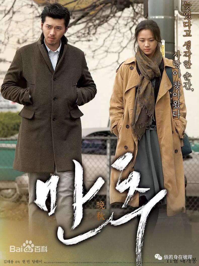 《晚秋》是金泰勇执导的一部电影,由汤唯、玄彬主演,于2011年2月17日在韩国上映,以西雅图为背景,讲述安娜因家暴失手杀了丈夫,因母亲葬礼假释三天,在车上偶遇玩世不恭的勋之后发生的一些事情。