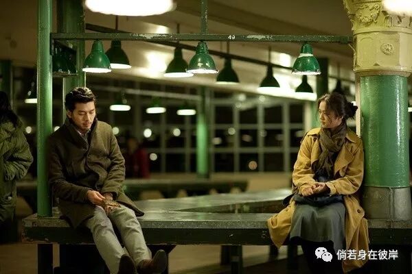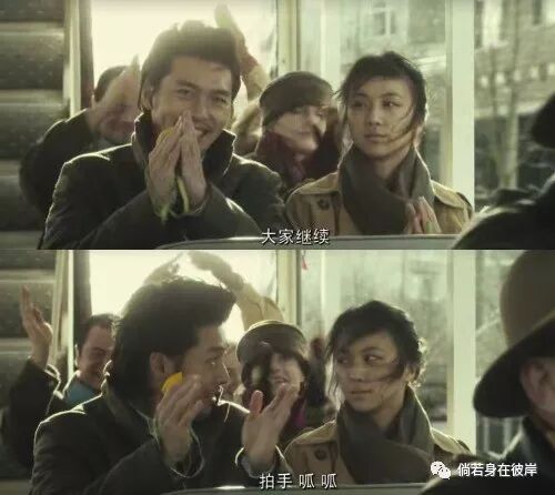 然后就是影片中经典的场景,废弃游乐场陌生恋人的舞台剧表演,勋和安娜对着唇形配音,抽象又艺术的与现实剥离。