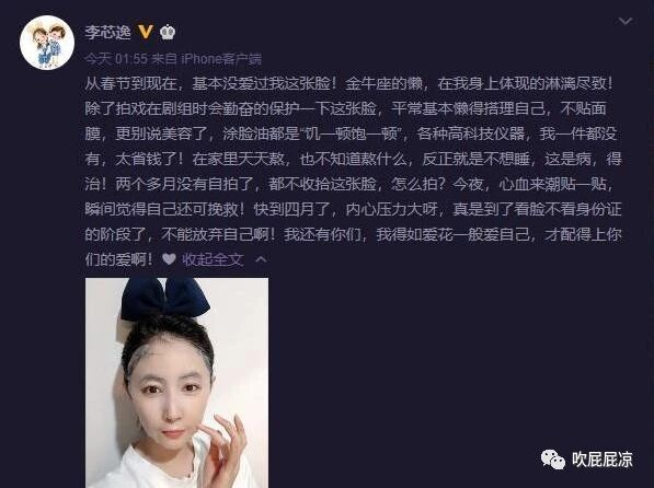 近期在李芯逸的社交平台看到了一条深夜发出的微博,其中表示自己自从春节开始就一直没有保养过自己的脸,也只有在拍戏的时候才...